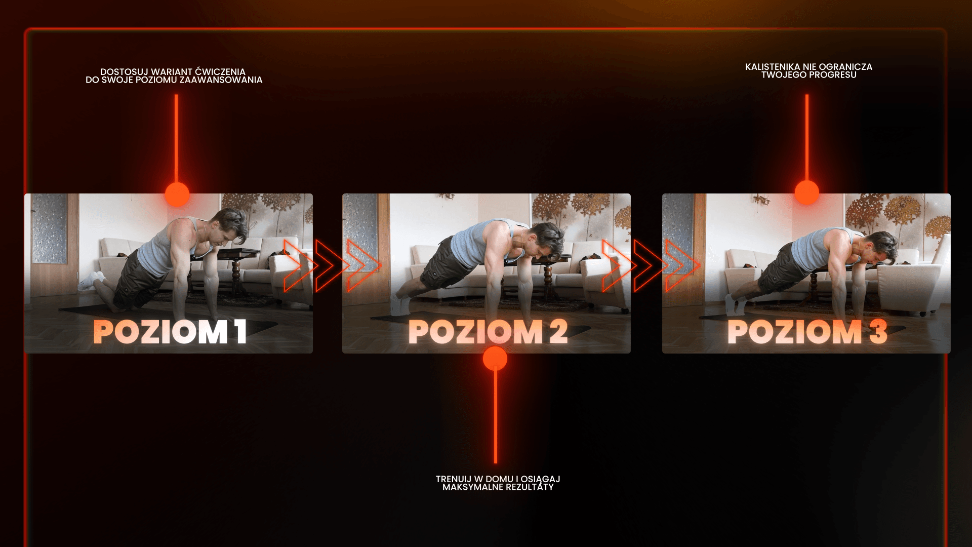 Nie martw się! Program jest tak zaplanowany, byś zaczynał od fundamentów, stopniowo budując siłę. Każdy może dojść do świetnych wyników – bez względu na obecny poziom sprawności.