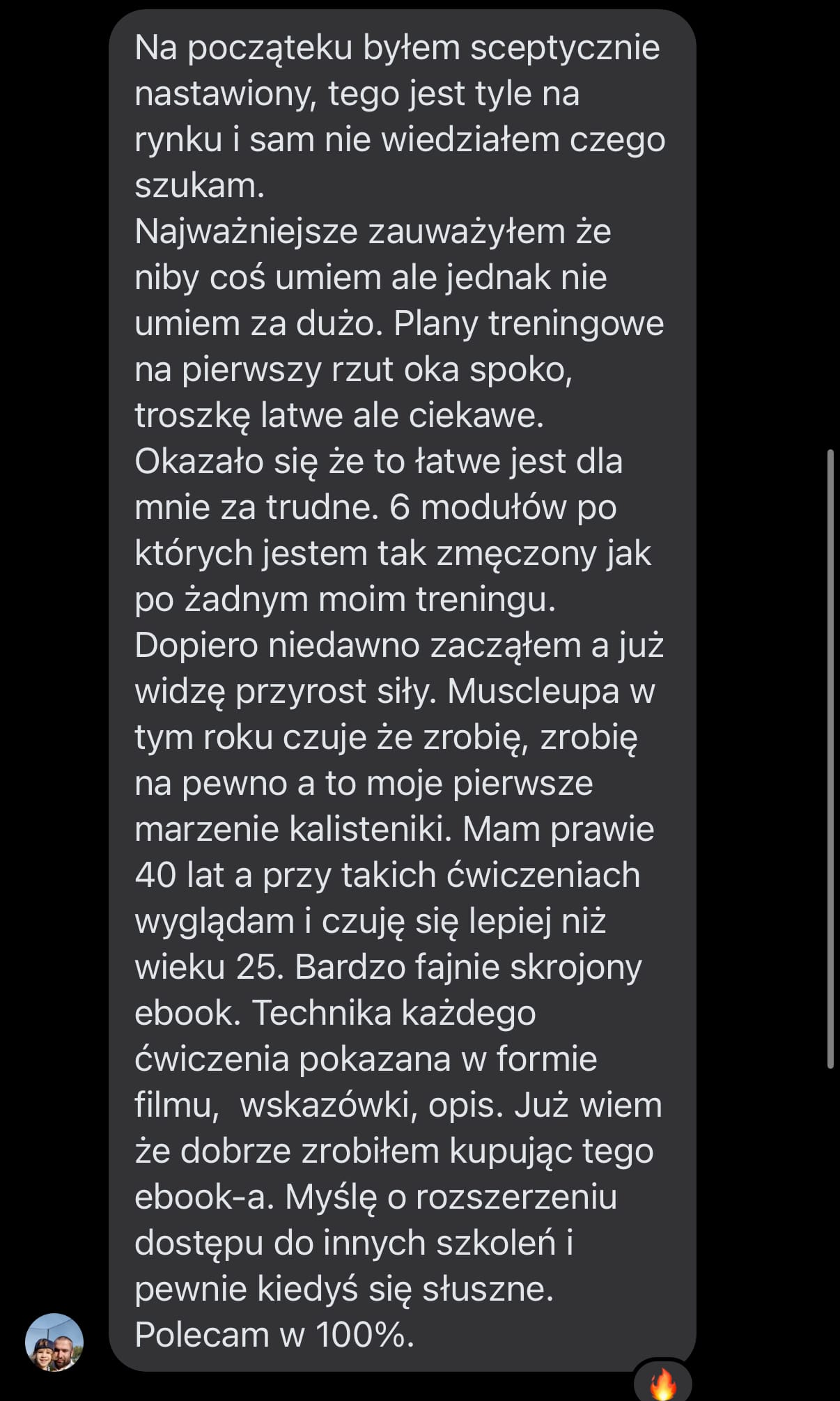 Tak! Kalistenika to najlepsza forma treningu dla osób w wieku 30-49 lat, ponieważ wzmacnia ciało, nie obciąża stawów i pozwala budować siłę i sprawność na lata. Kalistenikę może trenować każdy, niezależnie od wieku.